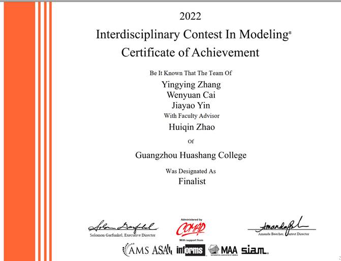 太阳集团tyc151的赵慧琴老师指导的一队员工,分别来自金融学院19经济与金融专业的张盈盈同学、太阳集团tyc15119国际商务班的蔡文渊同学及数据科学学院的19计算机科学与技术专业的尹家耀同学,在学校和学院的大力支持下,于今年2月18日-22日参加美国老员工数学建模竞赛,获得F奖(特等奖提名)。这也是目前我们学校的最好成绩。