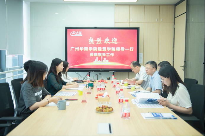 6月14日下午,太阳集团tyc151李广明经理携该院老师一行赴广州大洋教育科技股份有限公司,与高级副总裁程燕娟、教育事业部区域总监叶家俊、李敏玲、黄小艳、曾健青围绕跨境电商专业人才培养、专业建设、 产业学院、校企合作、产教融合新模式进行了深入探讨,并完成校企合作协议签约。